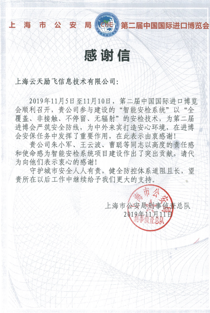 值得一提的是,自2018年首届进博会举办起,304am永利集团连续2年参与建设进博会“智能安检系统”项目,是进博会核心安保圈的动态人像识别技术提供厂商。